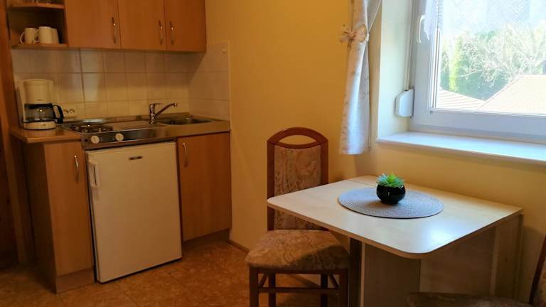 Die Studios im Hotel Apartman Mercédesz II. sind gemütlich eingerichtet und bieten einen komfortablen Wohnbereich mit Kabel-TV, eine praktische Küchenzeile und ein eigenes Badezimmer. Jedes Studio verfügt auch über einen eigenen Balkon mit Blick auf den Garten, der sich perfekt zum Entspannen und Genießen der frischen Luft eignet. Die Unterkunft bietet auch kostenfreie Privatparkplätze für die Gäste.