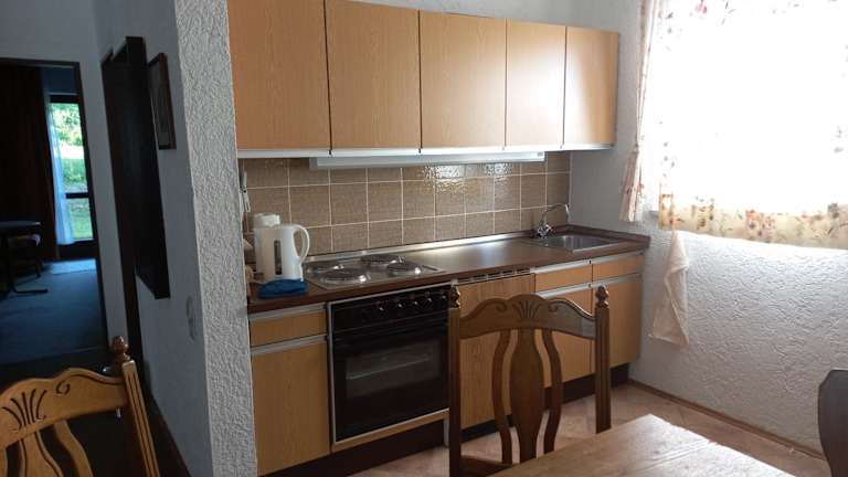 Die Ferienwohnung bietet ein separates Schlafzimmer und ein Badezimmer. Eine voll ausgestattete Küche mit Essbereich, Kühlschrank sowie ein Wohnzimmer mit Flachbild-TV sind vorhanden. Handtücher und Bettwäsche werden bereitgestellt.