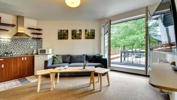 Apartmán Modrá hvězda ist eine Ferienwohnung, die über eine Sauna, einen Garten und eine Terrasse verfügt. Zudem bietet die Unterkunft Bergblick sowie kostenloses WLAN in allen Bereichen. Die Unterkunft wird von einem privaten Gastgeber geführt, und der Check-in ist ab 14:00 bis 19:00 Uhr möglich.