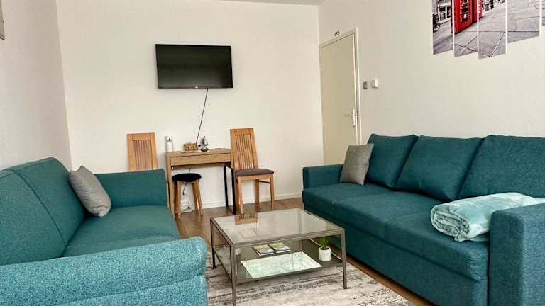 Die Ferienwohnung verfügt über ein Schlafzimmer, ein Wohnzimmer mit einem Flachbild-TV, eine voll ausgestattete Küche mit Kühlschrank und Geschirrspüler sowie ein Badezimmer mit Dusche. Handtücher und Bettwäsche werden bereitgestellt.