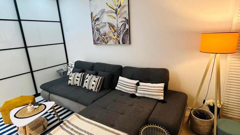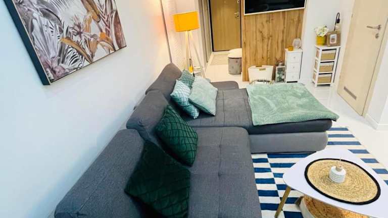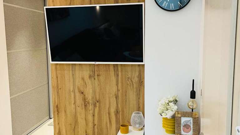 Die Ferienwohnung umfasst ein Schlafzimmer, eine Küche mit Kühlschrank und Geschirrspüler, einen Flachbild-TV, einen Sitzbereich sowie ein Badezimmer, das mit einer Badewanne oder Dusche ausgestattet ist. Handtücher und Bettwäsche werden bereitgestellt.
