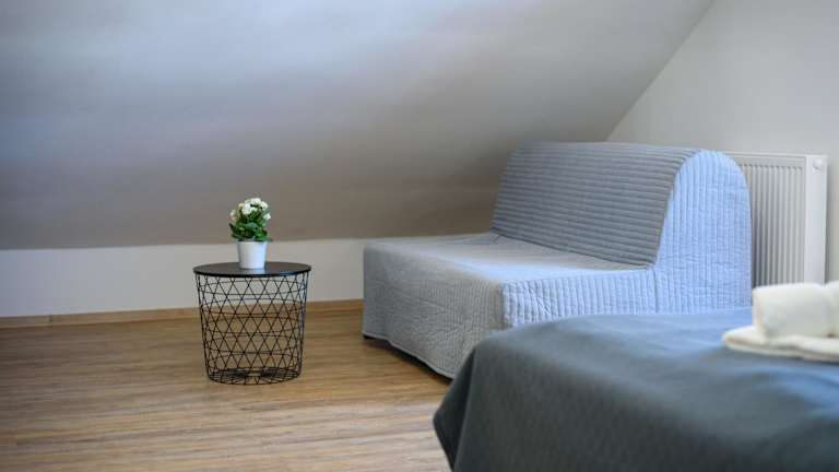 Die Ferienwohnung besteht aus einem Schlafzimmer, einem Wohnzimmer und einer voll ausgestatteten Küche, die mit einem Kühlschrank und einer Kaffeemaschine ausgestattet ist. Zudem gibt es ein Badezimmer mit einer Dusche. Handtücher und Bettwäsche werden in der Unterkunft bereitgestellt.