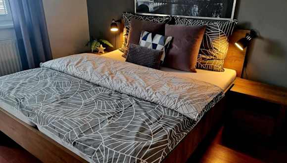 Das Apartment verfügt über ein gemütliches Schlafzimmer, ein Wohnzimmer mit Flachbild-TV und eine voll ausgestattete Küchenzeile mit Kühlschrank und Geschirrspüler. Das Badezimmer ist mit einer Dusche ausgestattet. Handtücher und Bettwäsche werden gestellt.