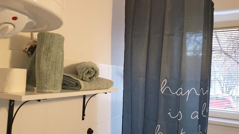 Die Ferienwohnung verfügt über ein Schlafzimmer, eine voll ausgestattete Küche mit Kühlschrank und ein Badezimmer mit Badewanne und kostenlosen Pflegeprodukten. Handtücher und Bettwäsche werden bereitgestellt.