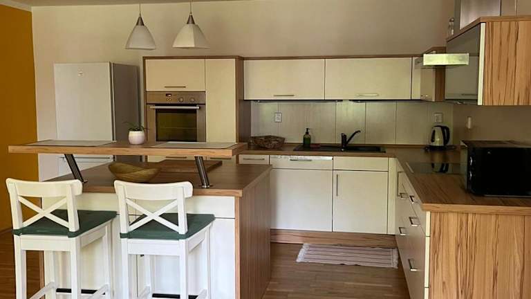 Das klimatisierte Apartment im Apartmán Pod Klášterem verfügt über 3 Schlafzimmer, ein geräumiges Wohnzimmer und eine voll ausgestattete Küche. Handtücher und Bettwäsche werden gestellt und im Bad finden Sie kostenfreie Pflegeprodukte.