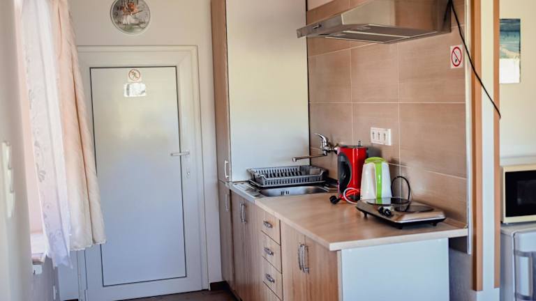 Die Ferienwohnung ist ausgestattet mit zwei Schlafzimmern, einer Küche, die einen Kühlschrank und eine Mikrowelle beinhaltet. Zudem verfügt sie über einen Flachbild-TV, einen Sitzbereich sowie ein Badezimmer mit Dusche. Handtücher und Bettwäsche werden bereitgestellt.