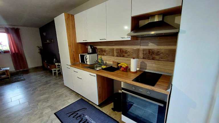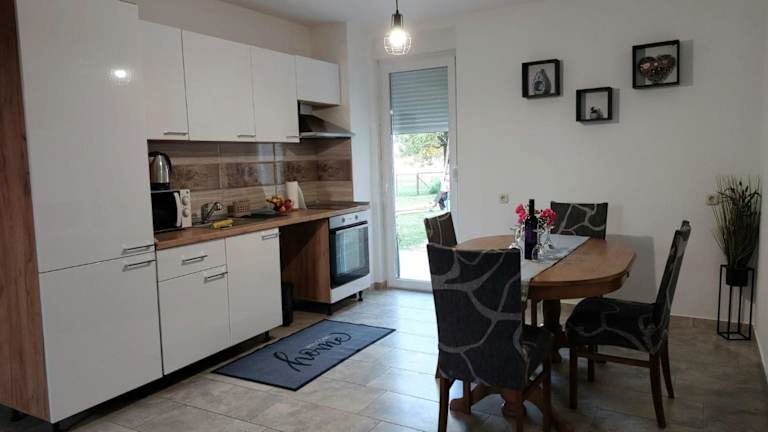 Das Apartman Rita bietet geräumige und komfortable Apartments mit einem Balkon, der einen herrlichen Blick auf den Garten bietet. Genießen Sie kostenfreies WLAN und fühlen Sie sich wie zu Hause. Die Apartments verfügen über 2 Schlafzimmer, ein gemütliches Wohnzimmer mit einem Flachbild-TV und eine voll ausgestattete Küche mit Kühlschrank und Backofen. Das Badezimmer ist mit einer Dusche ausgestattet und Handtücher und Bettwäsche werden gestellt.
