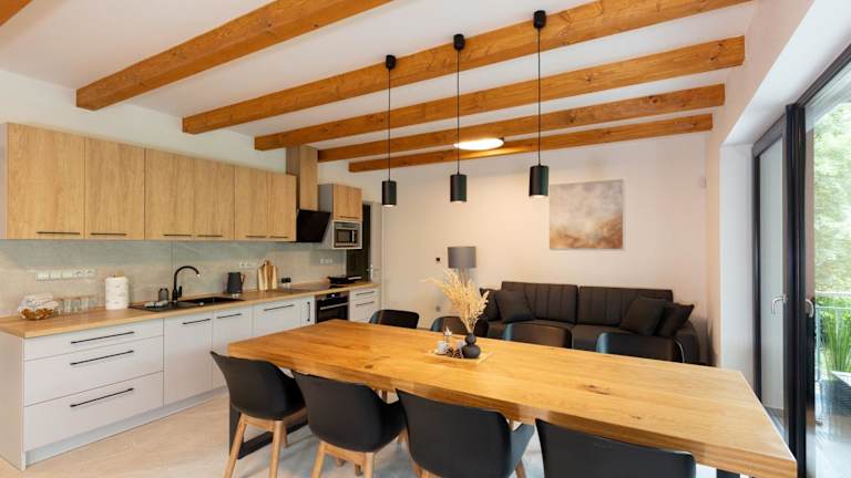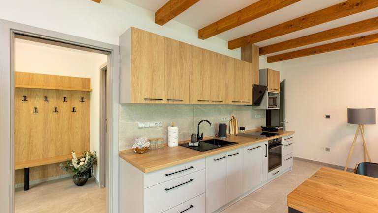 Das Apartment im Apartmán Smraďavka verfügt über 2 Schlafzimmer, ein gemütliches Wohnzimmer und eine gut ausgestattete Küche. Zur Ausstattung gehören ein Flachbild-TV, ein Kühlschrank und ein Geschirrspüler. Das Apartment bietet zudem ein Badezimmer mit Dusche. Handtücher und Bettwäsche werden gestellt. Von der Terrasse aus haben Sie einen schönen Blick auf den Garten.