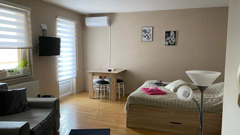 Das Apartman Stojadinović in Ruma ist eine komfortable Unterkunft mit kostenfreiem WLAN und Klimaanlage. Das Apartment bietet alles, was Sie für einen angenehmen Aufenthalt benötigen, einschließlich einer gut ausgestatteten Küchenzeile, einem gemütlichen Sitzbereich und einem modernen Badezimmer. Die Terrasse lädt zum Entspannen im Freien ein. Die Lage des Apartments ermöglicht es Ihnen, die nahegelegenen Sehenswürdigkeiten wie das Museum der Vojvodina und das serbische Nationaltheater zu erkunden. Der Flughafen Nikola-Tesla-Belgrad ist ebenfalls gut erreichbar.