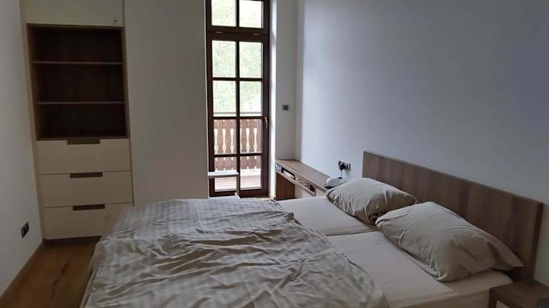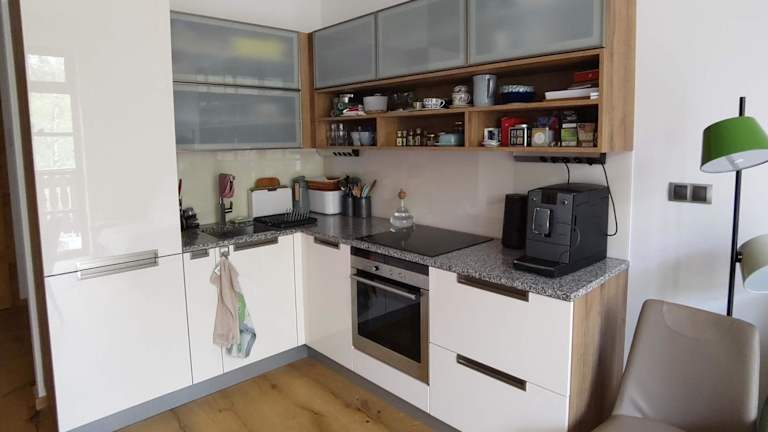 Die Ferienwohnung besteht aus einem Schlafzimmer, einem Wohnzimmer, einer voll ausgestatteten Küchenzeile mit Kühlschrank und Kaffeemaschine sowie einem Badezimmer mit Bidet und Dusche. Handtücher und Bettwäsche werden bereitgestellt.