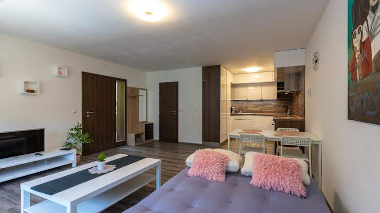 Die Apartments im Apartmán U Křížku bieten komfortable Unterkünfte mit moderner Ausstattung. Jedes Apartment verfügt über einen Flachbild-Sat-TV und eine voll ausgestattete Küche mit einem Kühlschrank, einer Mikrowelle, einem Kochfeld und einem Wasserkocher. Das private Badezimmer ist mit einer Dusche und kostenlosen Pflegeprodukten ausgestattet. Kostenloses WLAN ist ebenfalls vorhanden.