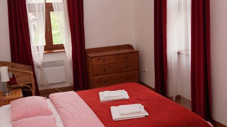 Das Apartmán v Háji - Jache dom ist in einem Ferienhof untergebracht und bietet eine moderne Ausstattung. Das Apartment verfügt über eine voll ausgestattete Küchenzeile, ein Wohnzimmer mit Flachbild-TV, zwei Schlafzimmer sowie ein Bad mit Dusche. Eine Terrasse mit Grillmöglichkeiten lädt zudem zum Verweilen ein. Die Unterkunft hat strikte Regeln, unter anderem sind keine Feiern wie Junggesellenabschiede erlaubt, und Haustiere sind nicht gestattet.