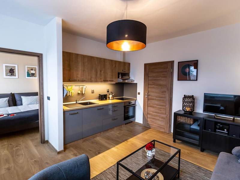 Das klimatisierte Apartment im apartmán v srdci Českého ráje verfügt über ein komfortables Schlafzimmer, ein gemütliches Wohnzimmer und eine voll ausgestattete Küche mit Kühlschrank und Kaffeemaschine. Das Badezimmer ist mit einer Dusche und kostenlosen Pflegeprodukten ausgestattet. Handtücher und Bettwäsche werden gestellt, um Ihnen einen angenehmen Aufenthalt zu ermöglichen.