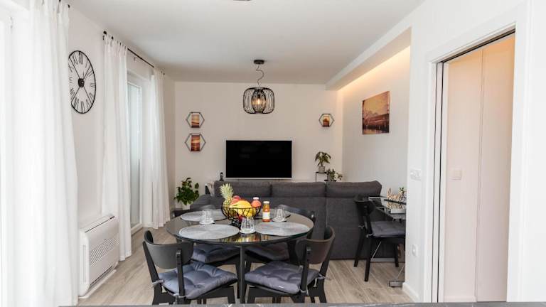 Die klimatisierten Zimmer des Apartman Vista Metković sind komfortabel und gemütlich eingerichtet. Jedes Zimmer verfügt über einen Balkon oder eine Terrasse, von der aus Sie den Fluss oder die Stadt sehen können. Die Zimmer sind mit einem Flachbild-TV und kostenfreiem WLAN ausgestattet. Eine voll ausgestattete Küche mit Kühlschrank und Geschirrspüler steht Ihnen ebenfalls zur Verfügung. Das Apartment verfügt über 2 Schlafzimmer und 1 Badezimmer mit Dusche. Handtücher und Bettwäsche werden gestellt.