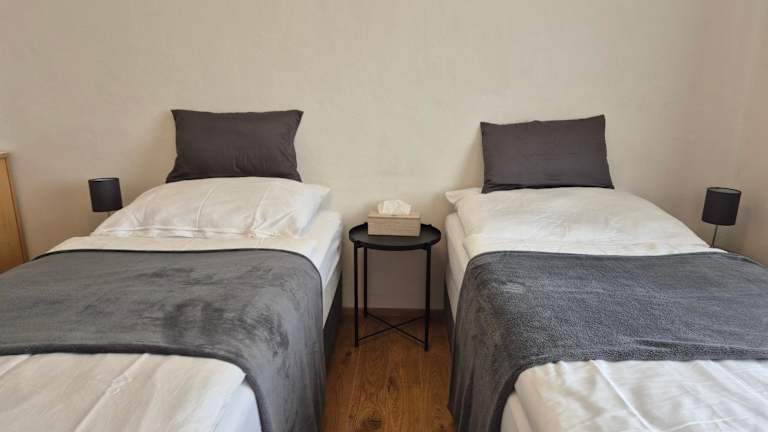Die Wohnung verfügt über 3 Schlafzimmer, eine gut ausgestattete Küche mit Kühlschrank und Ofen, sowie ein Badezimmer mit Dusche und kostenlosen Pflegeprodukten. Es stehen Handtücher und Bettwäsche zur Verfügung, zudem ist eine Waschmaschine vorhanden.