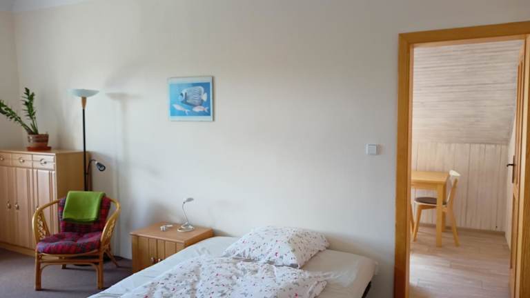 Das Apartment im Apartmán Zahrádka verfügt über ein gemütliches Schlafzimmer, eine gut ausgestattete Küche mit Kühlschrank und Mikrowelle sowie ein Badezimmer mit Dusche, Haartrockner und Waschmaschine. Handtücher und Bettwäsche werden gestellt, so dass Sie sich um nichts kümmern müssen. Der Gartenblick aus dem Apartment bietet eine entspannte Atmosphäre und lädt zum Verweilen ein.
