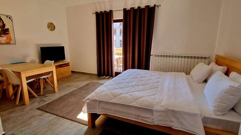 Die Apartments im Apartmani Aleksandra sind komfortabel eingerichtet und bieten eine entspannte Atmosphäre. Jedes Apartment verfügt über einen Balkon, von dem aus Sie den atemberaubenden Bergblick genießen können. Die Apartments sind mit einem Flachbild-TV ausgestattet und verfügen über ein eigenes Bad mit Dusche. Einige der Apartments bieten auch eine voll ausgestattete Küche mit Kühlschrank, Backofen und Kochfeld.