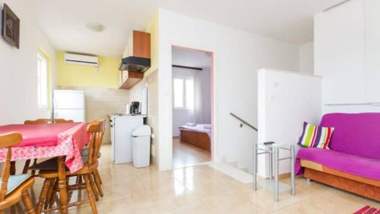 Das klimatisierte Apartment im Apartmani Dotur bietet Ihnen einen komfortablen Aufenthalt. Es verfügt über einen Essbereich und eine gut ausgestattete Küchenzeile mit einem Kochfeld, einem Wasserkocher und Küchenutensilien. Ein gemütlicher Sitzbereich mit Sat-TV ist ebenfalls vorhanden. Das Apartment bietet Ihnen somit alle Annehmlichkeiten, die Sie für einen angenehmen Aufenthalt benötigen.