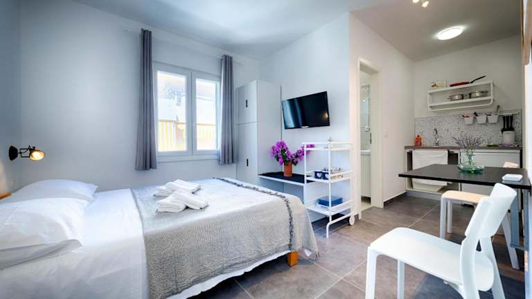 Die Zimmer der Unterkunft sind mit einem Balkon mit Stadtblick und kostenlosem WLAN ausgestattet. Jedes Zimmer verfügt über Klimaanlage, einen Sitzbereich, einen Flachbild-TV mit Satellitenkanälen, eine Küchenzeile, einen Essbereich und ein eigenes Badezimmer mit kostenlosen Pflegeprodukten, einer Dusche sowie einem Haartrockner. Einige Zimmer bieten eine Veranda oder einen Patio, während andere einen Meerblick haben. Es wird Bettwäsche und Handtücher bereitgestellt.