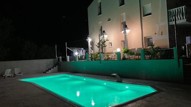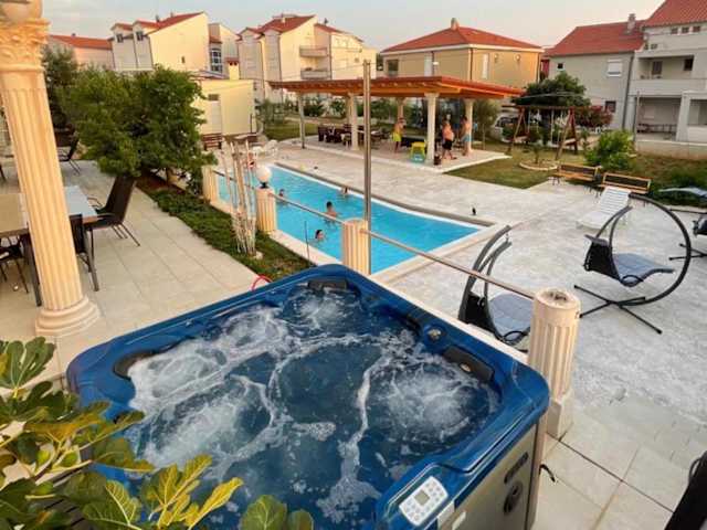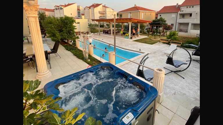 Apartmani Ivan V RELAX bietet eine klimatisierte Unterkunft mit einem Garten, einem Außenpool, Meerblick, Zugang zu einem Whirlpool und einem Spa-Center. Kostenloses WLAN steht zur Verfügung, und einige Einheiten sind mit einem Balkon oder einer Veranda/Patiо mit Bergblick ausgestattet.