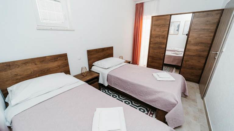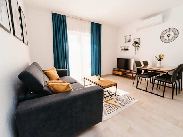 Apartmani Komarna bietet kostenfreies WLAN und Parkplätze sowie einen Balkon mit Stadt- und Meerblick. Die Unterkunft verfügt über eine eigene Ausstattung, darunter eine voll ausgestattete Küche, ein eigenes Badezimmer und eine Veranda oder einen Patio. Zudem gibt es Grillmöglichkeiten zur Verfügung.