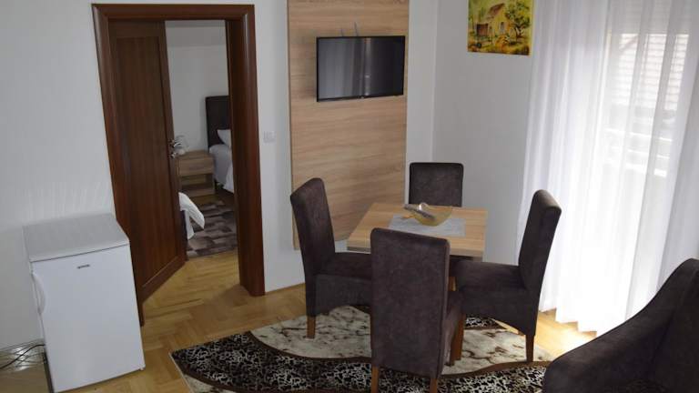 Jede Unterkunft im Apartmani Marić verfügt über eine voll ausgestattete Küche mit Essbereich, in der Sie Ihre eigenen Mahlzeiten zubereiten können. Ein Wasserkocher und ein Backofen stehen zur Verfügung. Die Unterkünfte bieten zudem ein geräumiges Wohnzimmer, in dem Sie sich entspannen können. Das private Badezimmer ist mit kostenfreien Pflegeprodukten ausgestattet. Genießen Sie den Komfort und die Privatsphäre dieser gut ausgestatteten Unterkünfte.