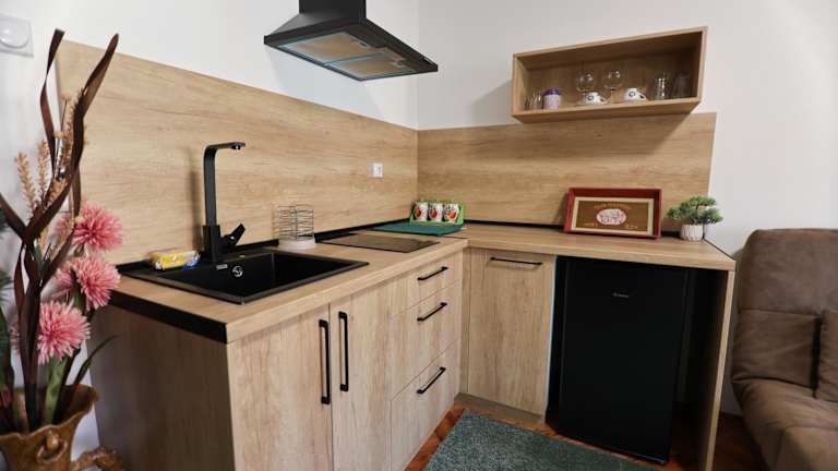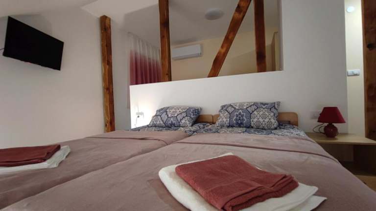 Apartmani Varos & Restaurant bietet Übernachtungsmöglichkeiten mit Blick auf die Berge, einem Garten und einer Terrasse. Zusätzlich wird eine Gemeinschaftslounge bereitgestellt. Die Unterkunft stellt außerdem einen Tennisplatz zur Verfügung. WLAN und ein Privatparkplatz werden kostenfrei angeboten.