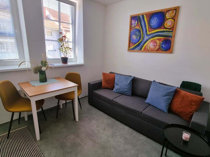 Apartmány Atrium bietet eine moderne Unterkunft mit kostenlosem WLAN und privaten Parkmöglichkeiten. Die Unterkunft umfasst zahlreiche Annehmlichkeiten für einen komfortablen Aufenthalt.
