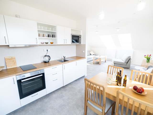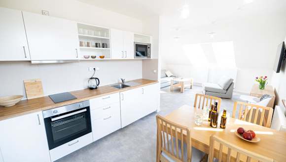 Apartmány Bakovský pivovar bietet eine komfortable Ferienwohnung, ausgestattet mit modernen Annehmlichkeiten und kostenlosem WLAN. Besondere Merkmale sind der Privatparkplatz und die Klimaanlage.