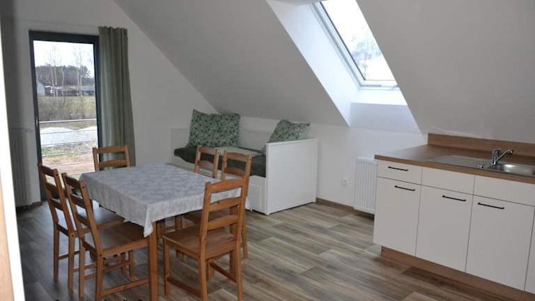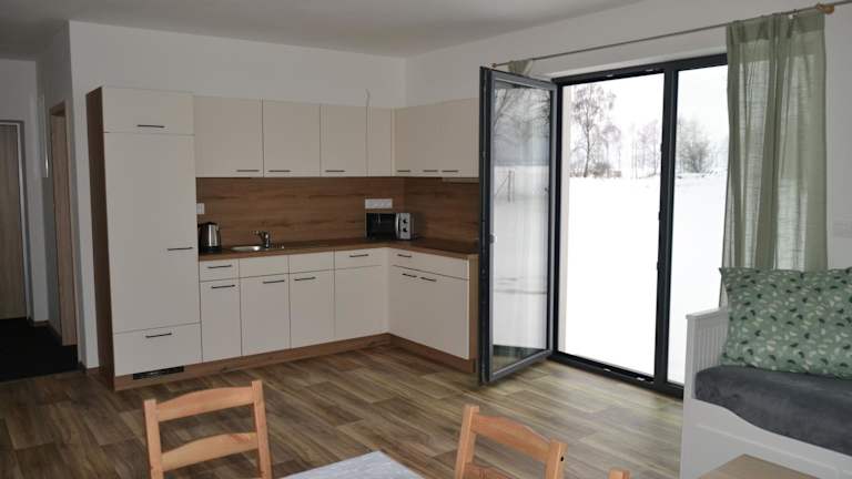 Die Wohneinheiten sind mit einer Küche ausgestattet, die über einen Essbereich verfügt. Außerdem stehen ein Kühlschrank, ein Geschirrspüler, eine Mikrowelle und ein Wasserkocher zur Verfügung.