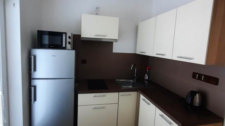 Die Wohneinheiten sind mit einer voll ausgestatteten Küche ausgestattet, inklusive Kühlschrank, Wasserkocher und Mikrowelle, was eine eigene Verpflegung ermöglicht.