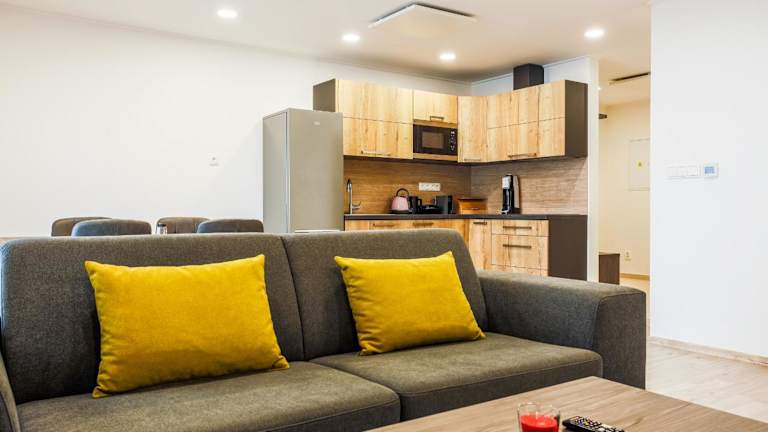 Die Apartments im Apartmány Na Výhledech sind komfortabel eingerichtet und bieten kostenfreies WLAN sowie kostenfreie Privatparkplätze. Jedes Apartment verfügt über eine Terrasse, auf der Sie den atemberaubenden Bergblick genießen können. Im Inneren finden Sie einen gemütlichen Sitzbereich und einen Flachbild-TV für entspannte Abende. Die voll ausgestattete Küchenzeile mit Kühlschrank und Kochfeld bietet Ihnen die Möglichkeit, Ihre eigenen Mahlzeiten zuzubereiten. Das eigene Badezimmer ist mit einer Dusche ausgestattet.
