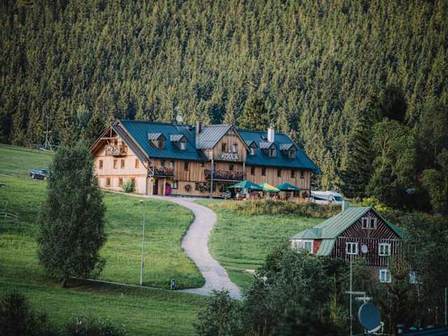 Die Penzion Koula befindet sich in Pec pod Sněžkou, nur 13 km von der Bushaltestelle Strážné entfernt. Die Pension bietet einen bequemen Zugang zu den öffentlichen Verkehrsmitteln und ist gut erreichbar. In der Umgebung gibt es viele Aktivitäten und Sehenswürdigkeiten zu entdecken, darunter das Western City, das 36 km entfernt ist, und die Kirche Wang, die 41 km entfernt liegt. Die Pension liegt auch in der Nähe von verschiedenen Wander- und Skigebieten, so dass Sie die Natur und die Berge in vollen Zügen genießen können.