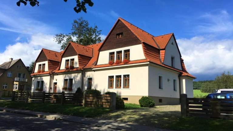 Das Hotel Apartmány Pod Křížovým vrchem Adršpach in Adršpach ist der ideale Ort für einen entspannten Aufenthalt in der Region Hradec Kralove. Hier finden Sie komfortable Unterkünfte mit kostenfreien Privatparkplätzen und einer voll ausgestatteten Küchenzeile. Der Garten lädt zum Entspannen ein und die Lage des Hotels ermöglicht es Ihnen, die umliegenden Sehenswürdigkeiten wie den Bahnhof Kudowa Zdrój und die Burg Książ zu erkunden.