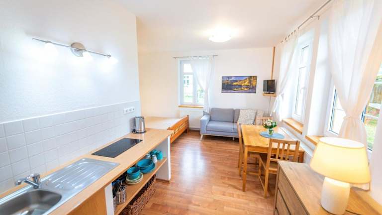 Das Hotel bietet keine Verpflegung oder Restaurants vor Ort an. Jedoch können Sie die voll ausgestattete Küchenzeile in Ihrem Zimmer nutzen, um Ihre eigenen Mahlzeiten zuzubereiten. Alternativ finden Sie in der Umgebung verschiedene Restaurants und Cafés, in denen Sie lokale Spezialitäten probieren können.