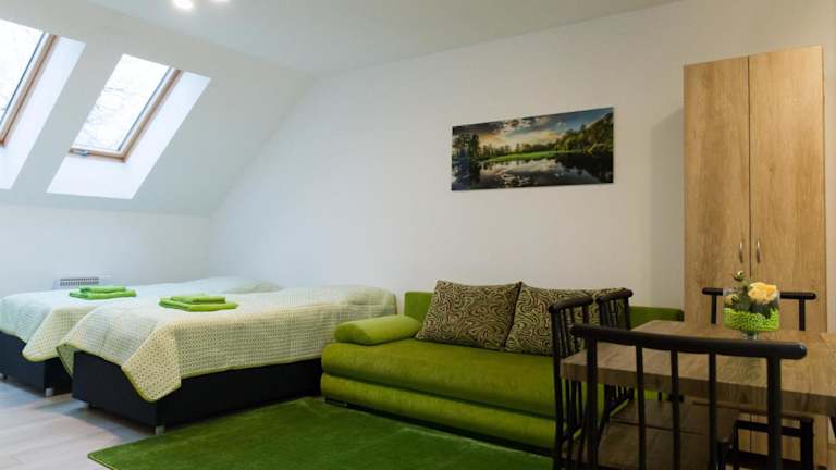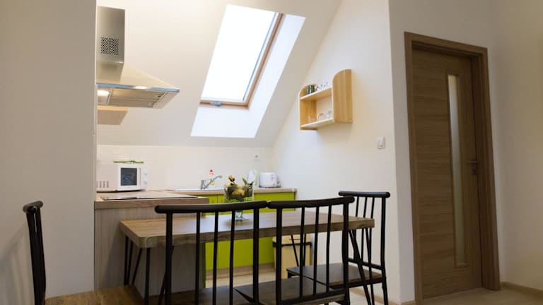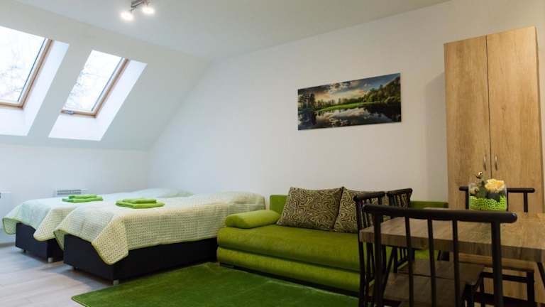 Die Unterkünfte im Apartmány pre Vás sind komfortabel und gemütlich eingerichtet. Jede Unterkunft verfügt über eine voll ausgestattete Küche mit einem Esstisch, so dass Sie Ihre Mahlzeiten bequem zubereiten können. Ein Flachbild-Sat-TV sorgt für Unterhaltung, während das private Badezimmer mit einer Dusche, kostenfreien Pflegeprodukten und Hausschuhen ausgestattet ist. Die klimatisierten Zimmer bieten zudem einen separaten Sitz- oder Essbereich, um Ihren Aufenthalt noch angenehmer zu gestalten.
