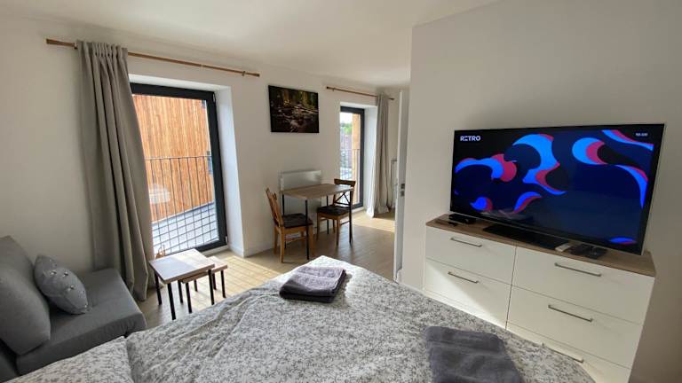 Die Wohneinheiten sind mit einem Flachbild-TV und einer voll ausgestatteten Küche ausgestattet. Zu den Küchengeräten gehören ein Kühlschrank, ein Ofen, eine Kaffeemaschine, eine Mikrowelle, eine Herdplatte, ein Toaster und ein Wasserkocher.