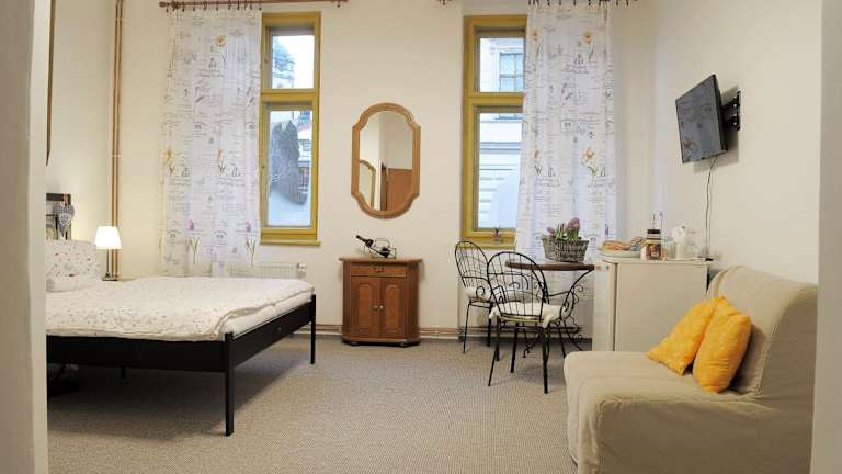 Das Apartmány V Podzámčí II ist eine ideale Unterkunft für Reisende, die einen entspannten Aufenthalt in einer ruhigen Umgebung suchen. Mit einer Terrasse und einer Veranda bietet das Apartmentkomplex komfortable Unterkünfte mit kostenfreiem WLAN. Die Zimmer sind gut ausgestattet und verfügen über einen Flachbild-TV sowie ein eigenes Badezimmer. Einige Zimmer verfügen auch über eine voll ausgestattete Küche. In der Umgebung gibt es zahlreiche Aktivitäten wie Wandern und Radfahren, und nach einem ereignisreichen Tag können Sie sich im Garten oder in der Gemeinschaftslounge entspannen. Die Unterkunft befindet sich in der Nähe des Parks Mirakulum und ist gut mit dem Václav-Havel-Flughafen Prag verbunden. Ein kostenpflichtiger Flughafentransfer wird angeboten.