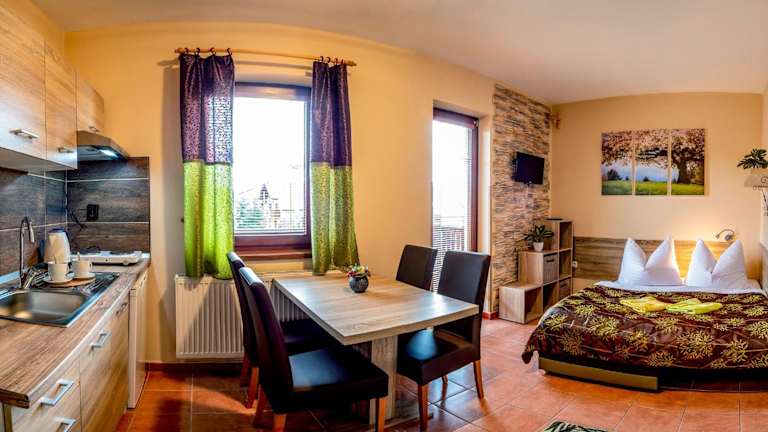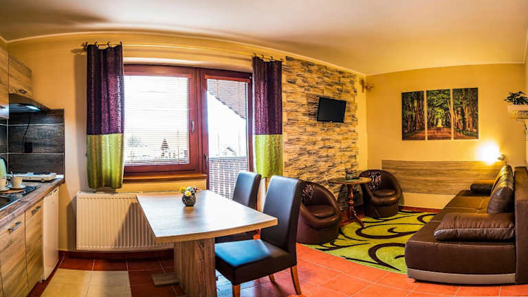 Das Apartmany Veverica in Liptovský Mikuláš ist ein familiengeführtes Hotel, das einen atemberaubenden Blick auf die Niedere Tatra bietet. Hier können Sie sich auf kostenfreies WLAN und gemütliche Zimmer mit Sat-TV freuen. Die Gemeinschaftsküche ermöglicht es Ihnen, Ihre eigenen Mahlzeiten zuzubereiten, und auf Anfrage werden verschiedene Gerichte serviert. Das Hotel liegt in der Nähe des Skigebiets Žiarce und verfügt über Annehmlichkeiten wie einen Garten mit Terrasse, Grillmöglichkeiten, einen Spielplatz für Kinder und eine Skiaufbewahrung. In der Umgebung gibt es auch ein Restaurant, einen Tennisplatz, ein Wellnesscenter und Einkaufsmöglichkeiten. Liptovský Mikuláš und das Skigebiet Jasná-Chopok sind ebenfalls leicht zu erreichen.