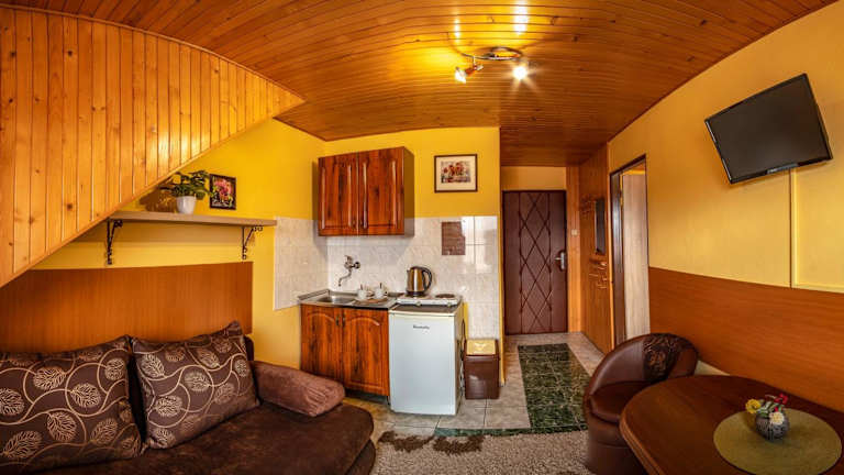Die Zimmer im Apartmany Veverica sind gemütlich und verfügen über Sat-TV und kostenfreies WLAN. Sie haben auch ein eigenes Badezimmer mit Dusche und Fliesenboden. Die Gemeinschaftsküche bietet allen Gästen die Möglichkeit, ihre eigenen Mahlzeiten zuzubereiten, und auf Anfrage werden verschiedene Gerichte serviert. Das gemeinschaftlich genutzte Wohnzimmer verfügt über einen Kamin und Billardtische, wo Sie sich entspannen und Spaß haben können.