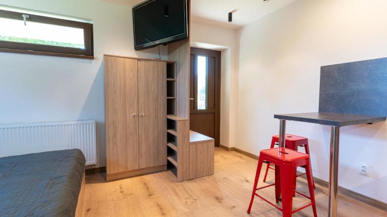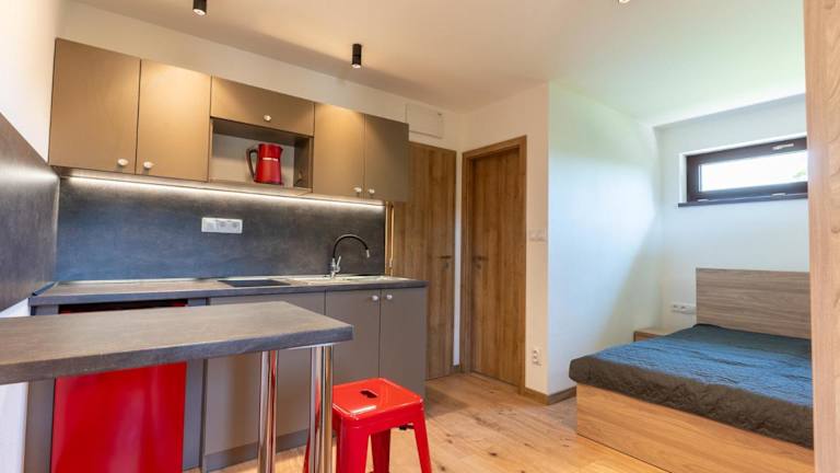 Die Wohneinheiten sind mit einem Sitzbereich, einem Kabel Flachbild-TV und einer voll ausgestatteten Küchenzeile mit Kühlschrank und Mikrowelle ausgestattet. Jedes Zimmer verfügt über ein eigenes Badezimmer mit Dusche und kostenlosen Pflegeprodukten. Zudem bieten alle Wohneinheiten einen Balkon mit Blick auf die Berge.