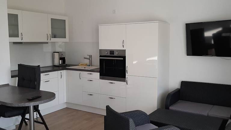 Das Apartment 10 bietet Ihnen eine komfortable Unterkunft mit einem TV und einem gemütlichen Wohnzimmer. Die Küchenzeile ist gut ausgestattet mit einem Kühlschrank, einem Geschirrspüler, einem Backofen, einer Kaffeemaschine und einem Wasserkocher. So können Sie sich ganz einfach selbst verpflegen und Ihren Aufenthalt genießen.