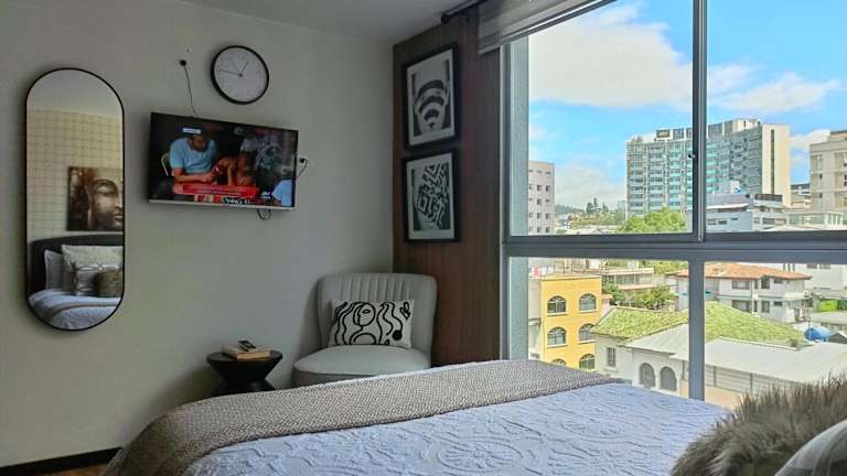 Die Unterkunft befindet sich in der Nähe von El Ejido Park, etwa 1 km entfernt, und bietet Bergblick sowie eine gute Anbindung. Die nächste große Stadt ist Quito, in der der Flughafen 32 km entfernt ist.