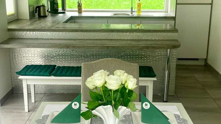 Die Ferienwohnung umfasst 1 Schlafzimmer, ein Wohnzimmer, ein Badezimmer mit Dusche und Badewanne sowie eine gut ausgestattete Küche. Zur Ausstattung gehören ein Satelliten Flachbild-TV, Handtücher und Bettwäsche.