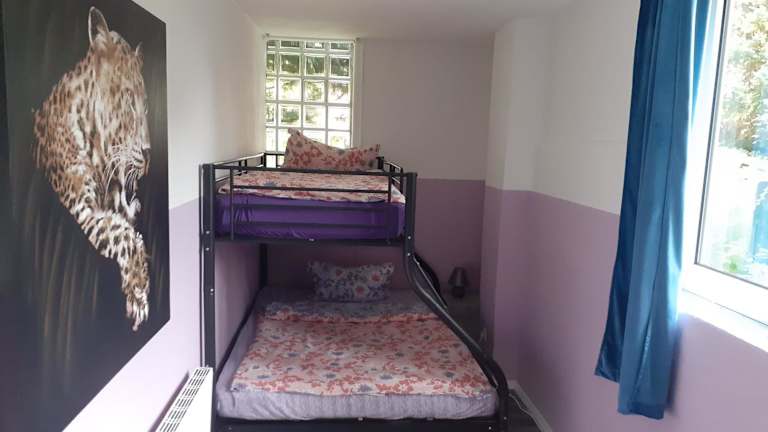 Die Ferienwohnung verfügt über ein Schlafzimmer, einen Flachbild-TV mit Kabelkanälen und eine gut ausgestattete Küche, die einen Kühlschrank und einen Ofen umfasst. Das Badezimmer ist mit einer Dusche ausgestattet. Handtücher sowie Bettwäsche werden bereitgestellt.