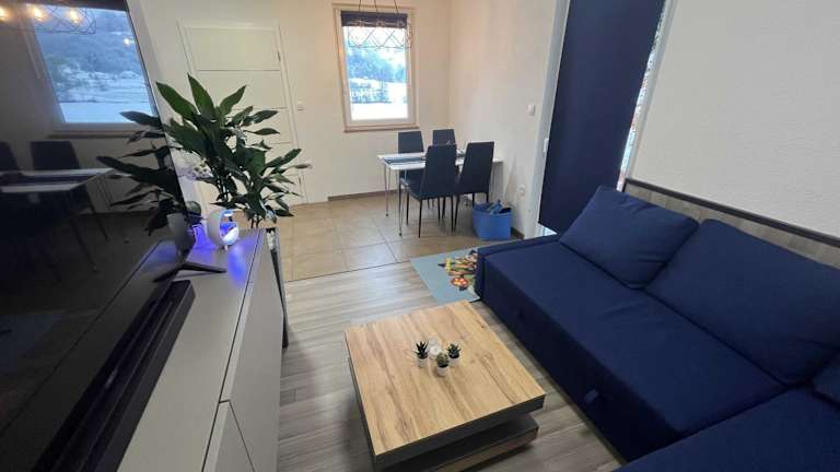 Das Apartment bietet ein Schlafzimmer, ein Wohnzimmer, einen Flachbild-TV sowie eine gut ausgestattete Küche mit Kühlschrank und Herdplatte. Die Unterkunft umfasst zudem ein Badezimmer mit Dusche und stellt Handtücher und Bettwäsche bereit. Des Weiteren bietet die Ferienwohnung eine Terrasse und einen Blick auf die Berge.