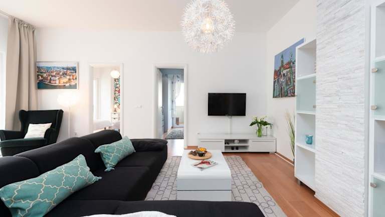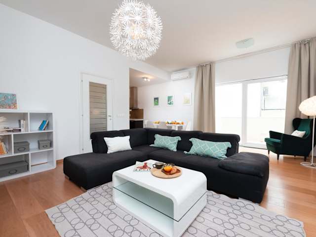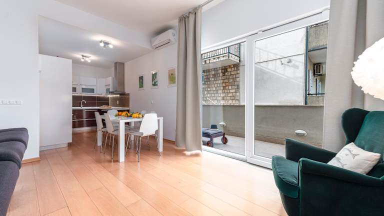 Das Apartment Adrian bietet Ihnen ein modernes und stilvolles Interieur mit einem Balkon und einer Terrasse, auf der Sie die Aussicht auf die Stadt genießen können. Es gibt 2 Schlafzimmer, ein Wohnzimmer, einen Flachbild-TV und eine ausgestattete Küche mit einem Kühlschrank und einem Geschirrspüler. Das Apartment ist klimatisiert und verfügt über ein Badezimmer mit einer Dusche. Handtücher und Bettwäsche werden gestellt.