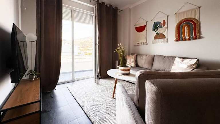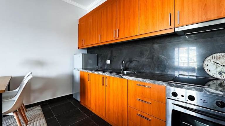 Das Apartment verfügt über 1 Schlafzimmer, ein Wohnzimmer und eine komplett ausgestattete Küche mit Kühlschrank und Kaffeemaschine. Das Badezimmer ist mit einer Dusche und einem Haartrockner ausgestattet. Handtücher und Bettwäsche werden bereitgestellt. Zu den Annehmlichkeiten gehören Klimaanlage und schallisolierte Zimmer.
