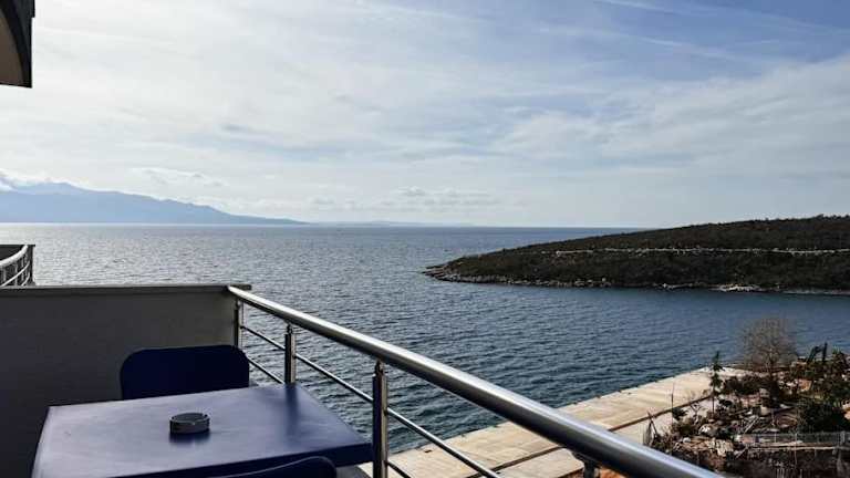 Das Apartment Alexandra ist eine Unterkunft direkt am Strand mit Meerblick. Die Ferienwohnung umfasst ein Schlafzimmer, ein Wohnzimmer und eine voll ausgestattete Küche.