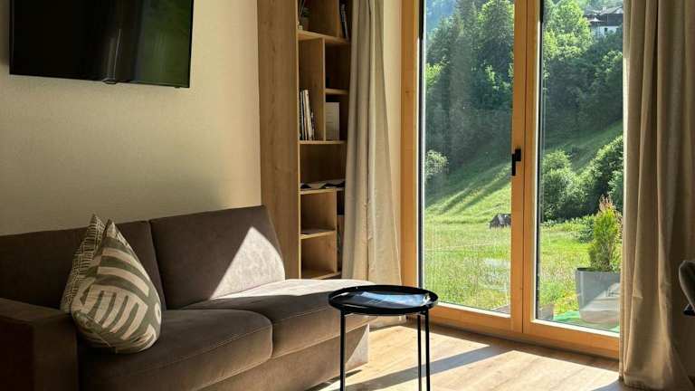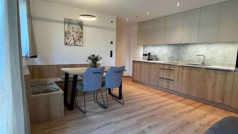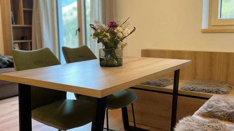 Die Ferienwohnung verfügt über ein Schlafzimmer, ein Wohnzimmer mit einem Flachbild-TV, eine gut ausgestattete Küche mit Kühlschrank und Geschirrspüler sowie ein Badezimmer mit Dusche. Zudem gibt es eine Terrasse mit Bergblick. Handtücher und Bettwäsche sind ebenfalls vorhanden.